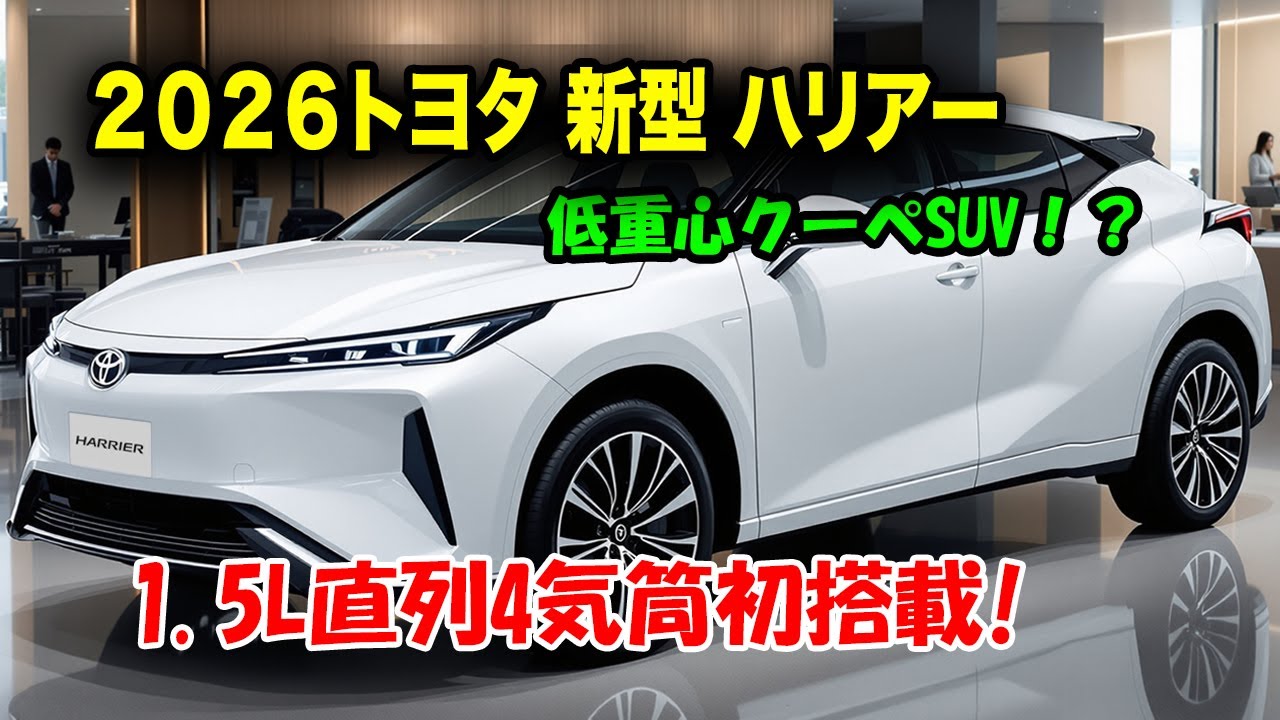 トヨタ新型ハリアーが2026年、ついにフルモデルチェンジを迎えます。最大の注目は新開発の1.5L直列4気筒エンジンで、HVは235馬力、PHVは驚異の342馬力を発揮!0-100km/h加速は5.5秒というSUVの常識を覆す俊足性能を誇ります。さらにAIがドライバーの行動を学習し、快適な提案をしてくれる未来型インテリアや、Toyota Safety Sense 4.0による最新の安全装備も搭載。美しさと知性を兼ね備えた次世代プレミアムSUV「新型ハリアー」の全貌を徹底解説します。