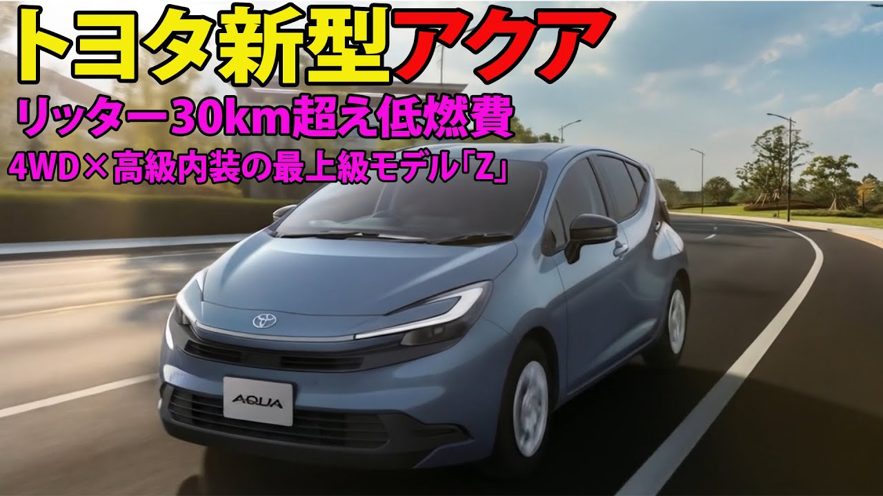🌟 遂に発表!トヨタ新型アクア がリッター30キロを超える低燃費性能と、あの「センチュリー」に採用された画期的な技術を標準装備して登場しました。ハイブリッドカーの新基準を打ち立てる一台です。
