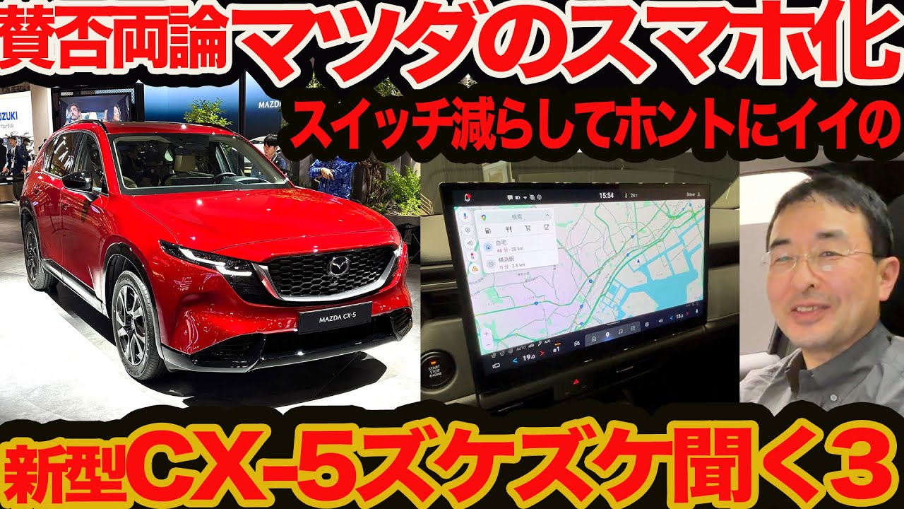新型CX-5ズケズケ聞く クルマのスマホ化編 遂にエアコンメカSWを減らして15.6インチディスプレイ化! マツダがテスラを追ってどうする? OTAもやるってホント? なぜみんなグーグルなの?